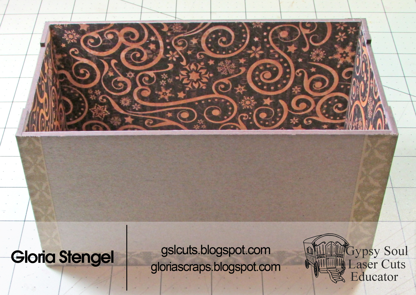 Cover the outside surfaces of the box with decorative paper. I adhere my paper with a matte gel medium, using a foam brush.