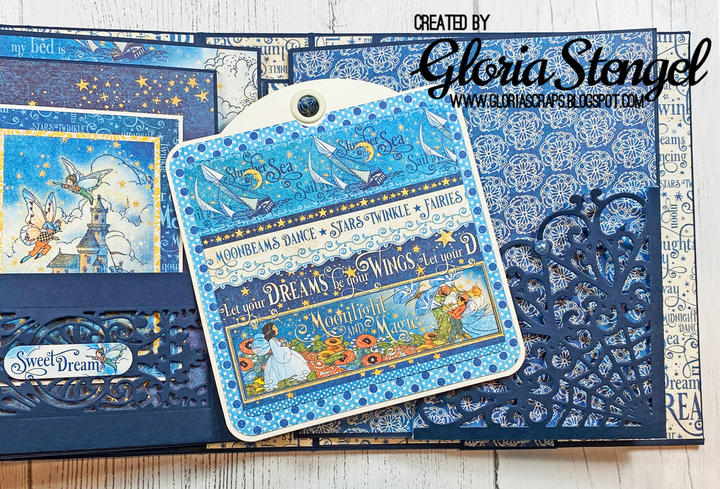 Hey, ROCK STAR!!! My socks have officially been blown off by this album!!! This, by far, is my favorite even though all of your albums are fabulous! You had me at blue, but all of the amazing details made me fall in love more. This is silly, but my fave thing is how you embellished so many areas with the man in the moon.....genius touch! Love ya, GF! Mwaaah!!!